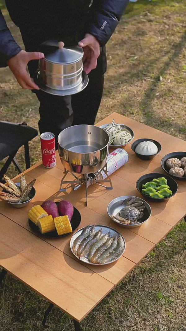 There's no need to reinvent the wheel with classic cooking, and Camping Moon's 3-layer Stackable Steamer allows for modularity and ease with your existing pots and pans. Fitting just about any pot between 5.7 and 7.7" in diameter, the included frame allows you to stack up the fully stainless steel steamers one atop another while the lid retains heat and moisture for a better cook.