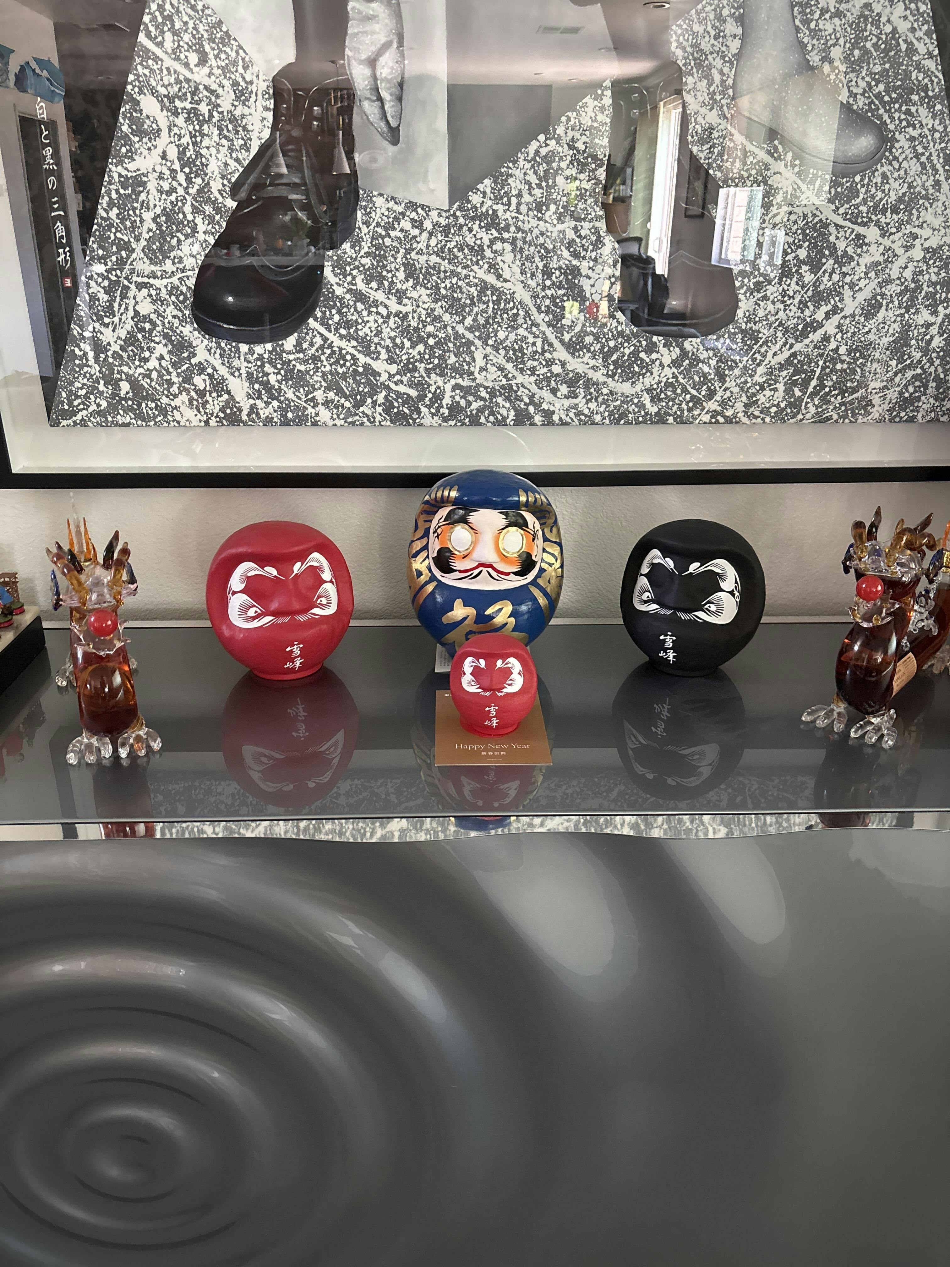 At the start of each year, as we reflect on what we've done and what we wish to do with our time, the Daruma doll reminds us to set intentions and goals and helps to hold us accountable. Constructed of paper mache, but with empty eyes, the owner fills in the left when a goal or intention is set, and the other once fulfilled. To commemorate the year, Daruma dolls are typically burned to ash.