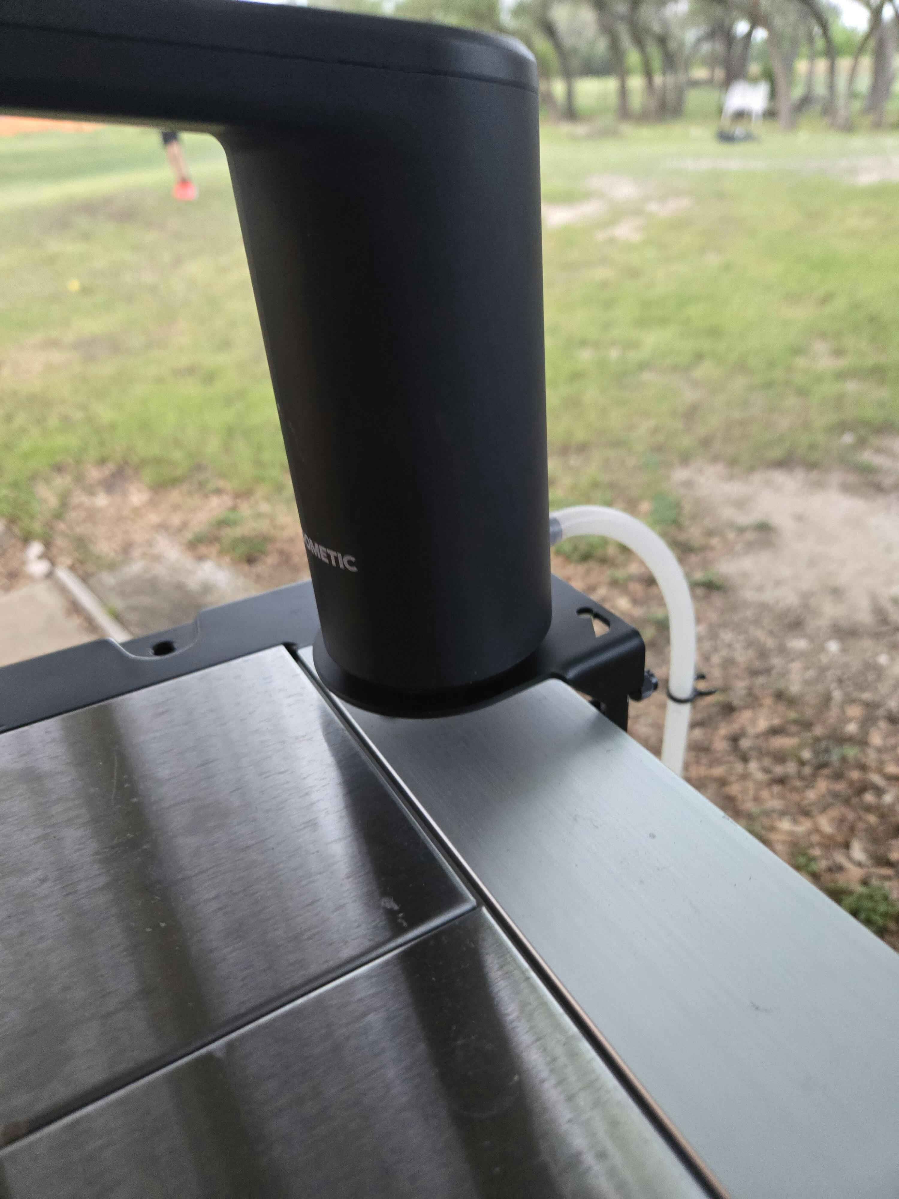 Give your Dometic GO, or any portable faucet a home in your IGT camp kitchen setup with our Updated IGT Faucet Connection Mount. Crafted from powder-coated steel, it offers a magnetic connection to most camp faucets like the Dometic GO, while also offering weather and rust resistance. The new version also features a center hole for bottom mounted hose faucets*.