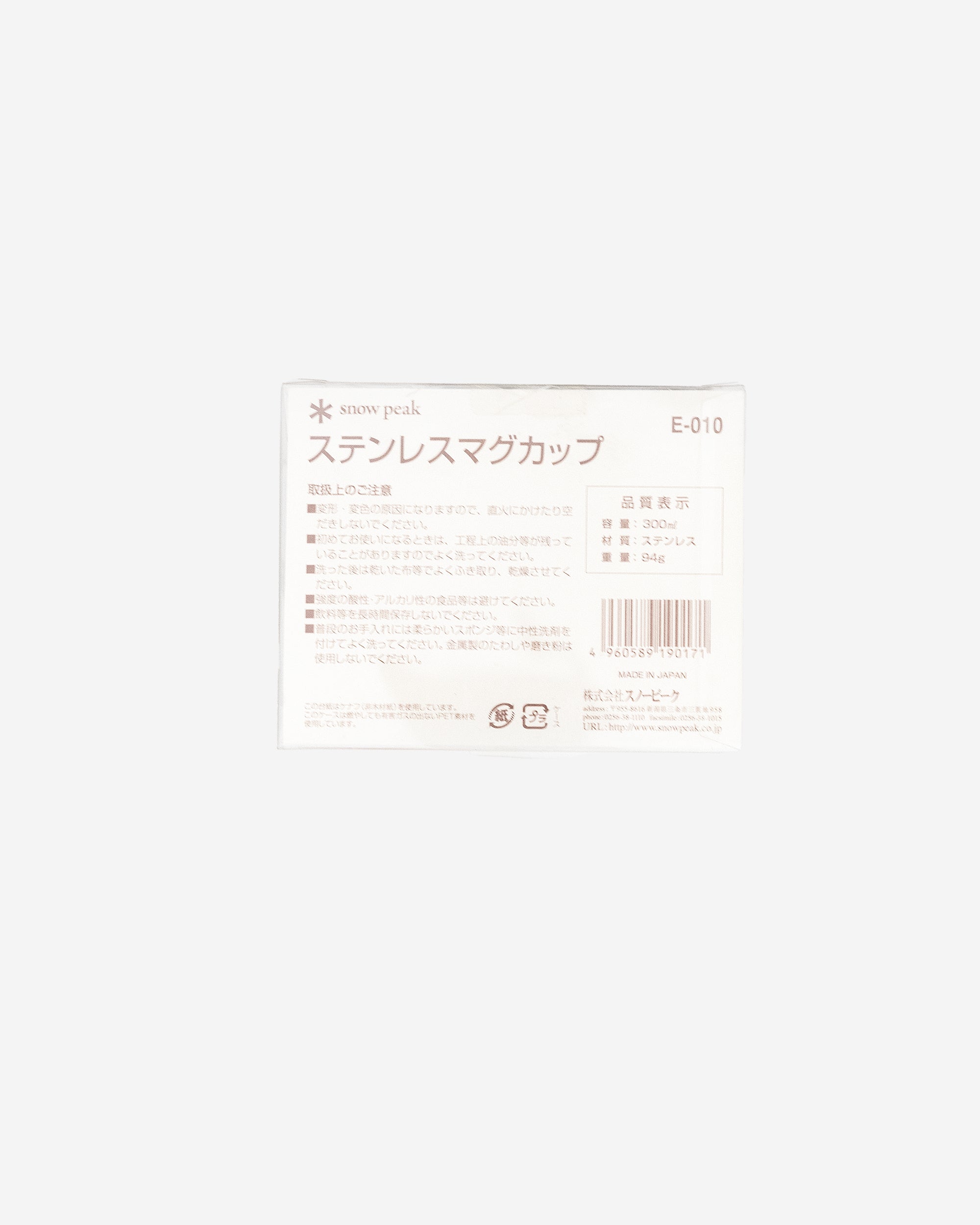Little is known about this collaboration/promotional piece produced with French automaker, Renault for their Kangoo car. Based on Snow Peak's E-010 Stainless Steel Mug, it features a cartoonish drawing of the car screen printed on the face. The only other component to this series was a Multi-Stand table offered, also with Renault branding.